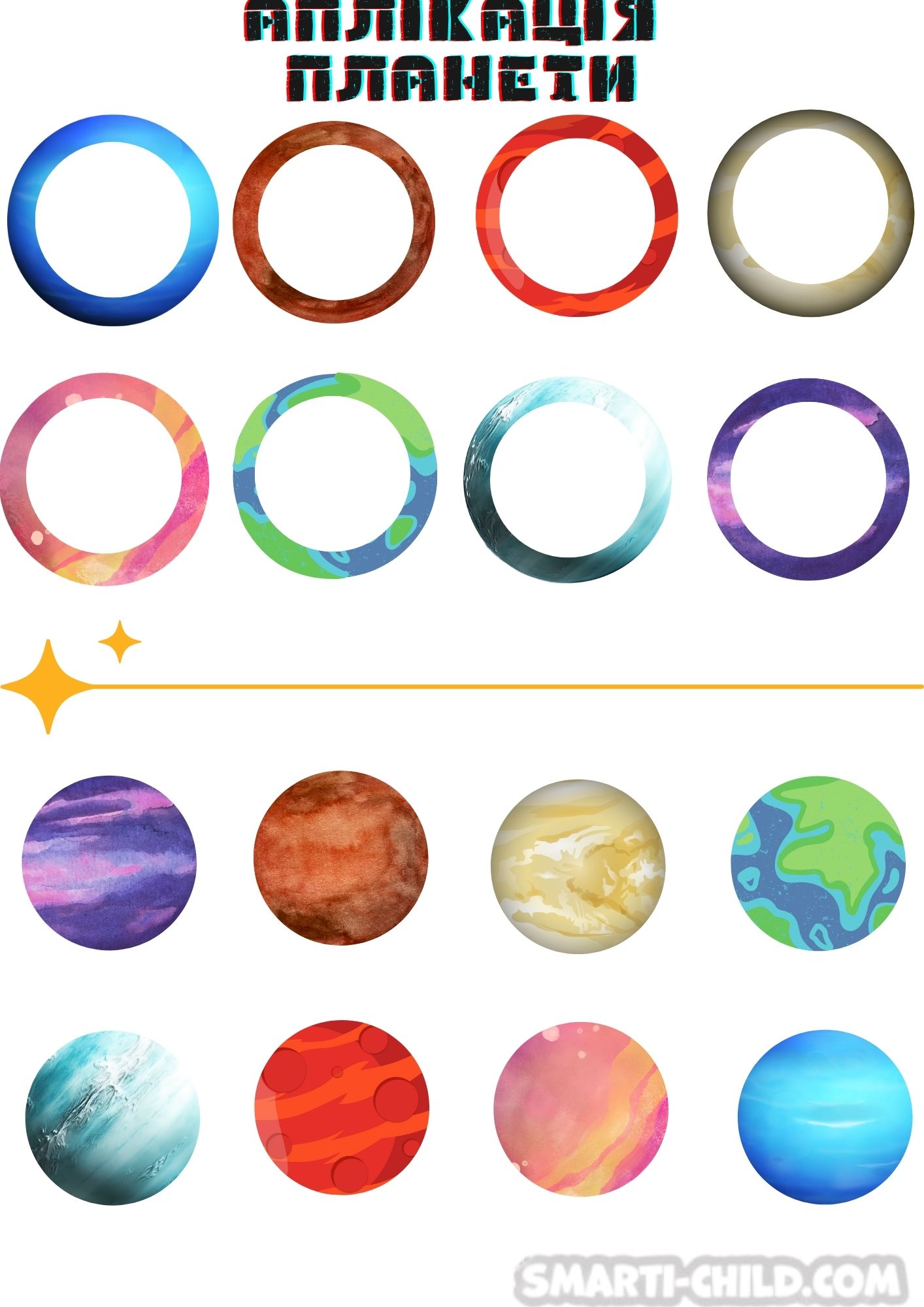 2️⃣ Завдання дитини — знайти правильну пару: яка планета підходить до якого кільця за кольором і візерунком 🎨.