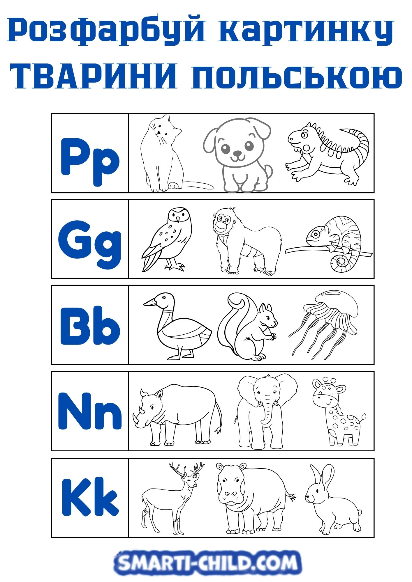 Розфарбуй картинку ТВАРИНИ польською
