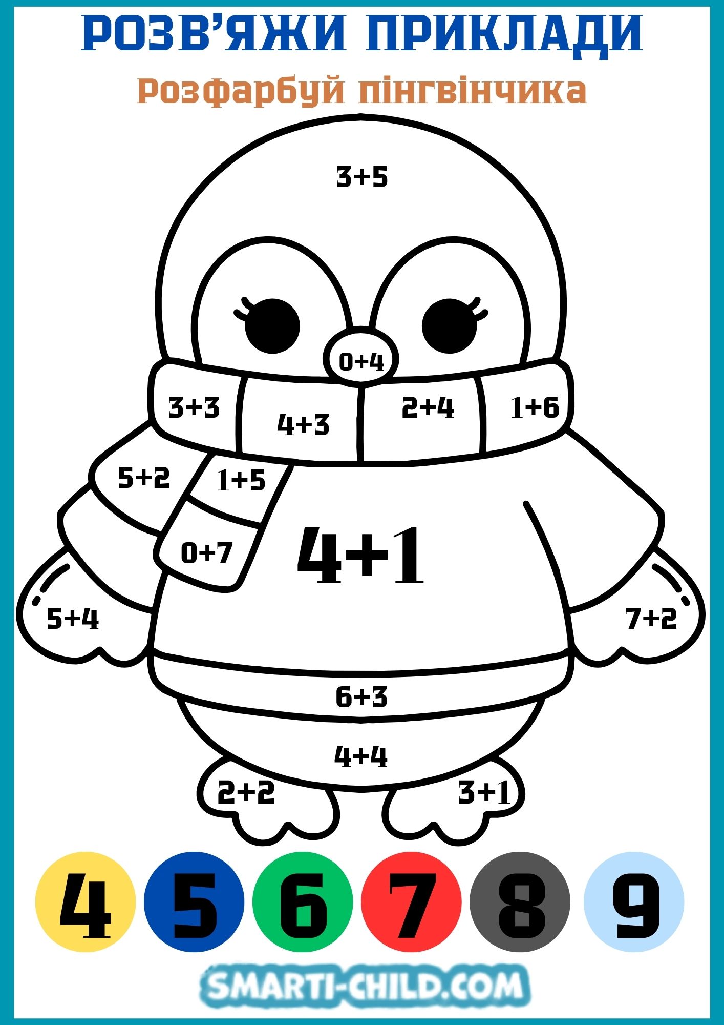 Розв’яжи приклади Розфарбуй пінгвінчика