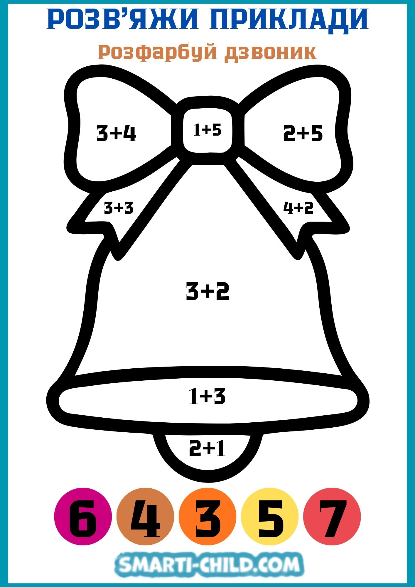 Розв’яжи приклади Розфарбуй дзвоник