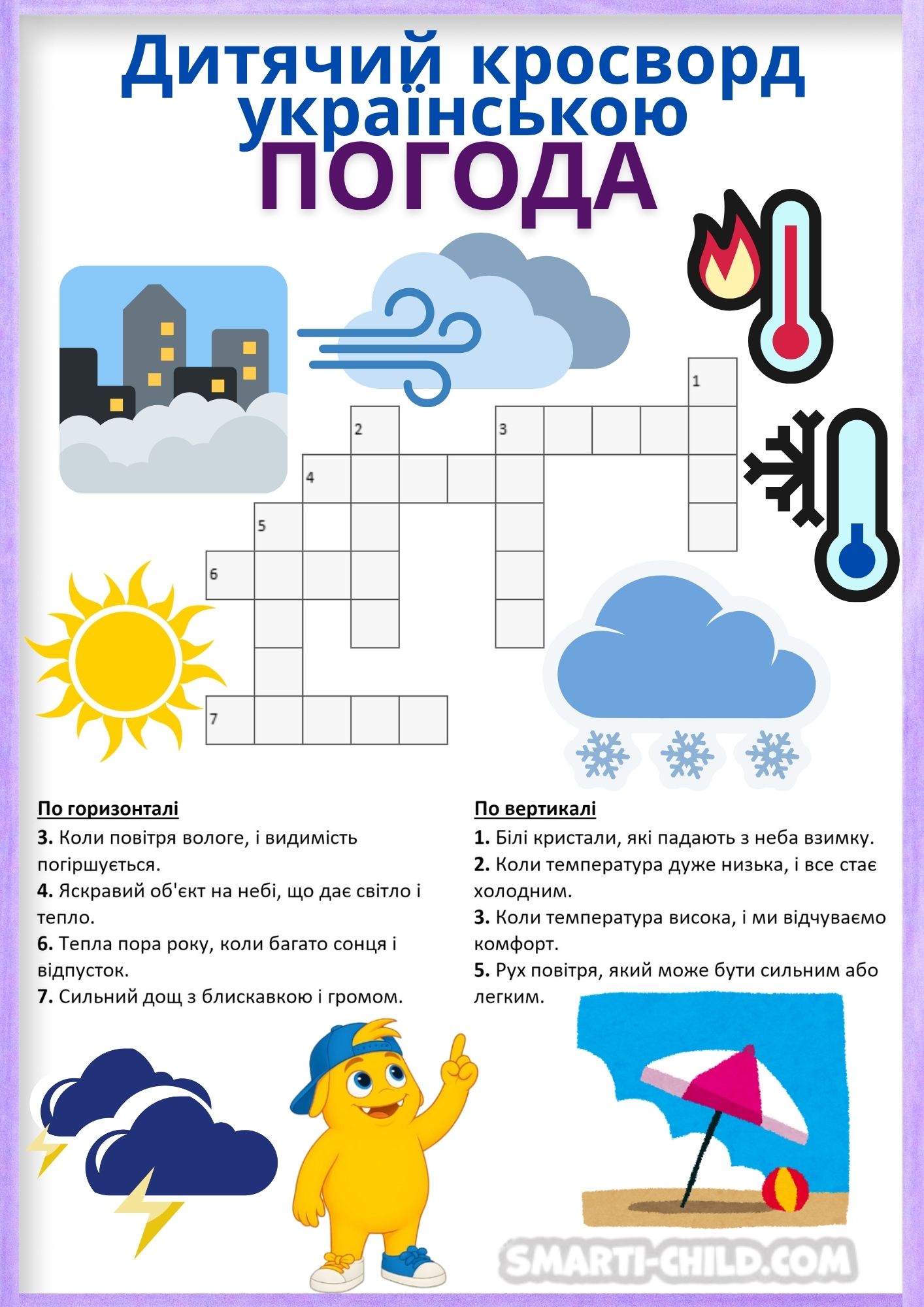 Разом з дитиною уважно розгляньте кросворд, прочитайте загадки. Запропонуйте дитині самостійно відгадати їх та самостійно записати відповіді в клітинки кросворду.