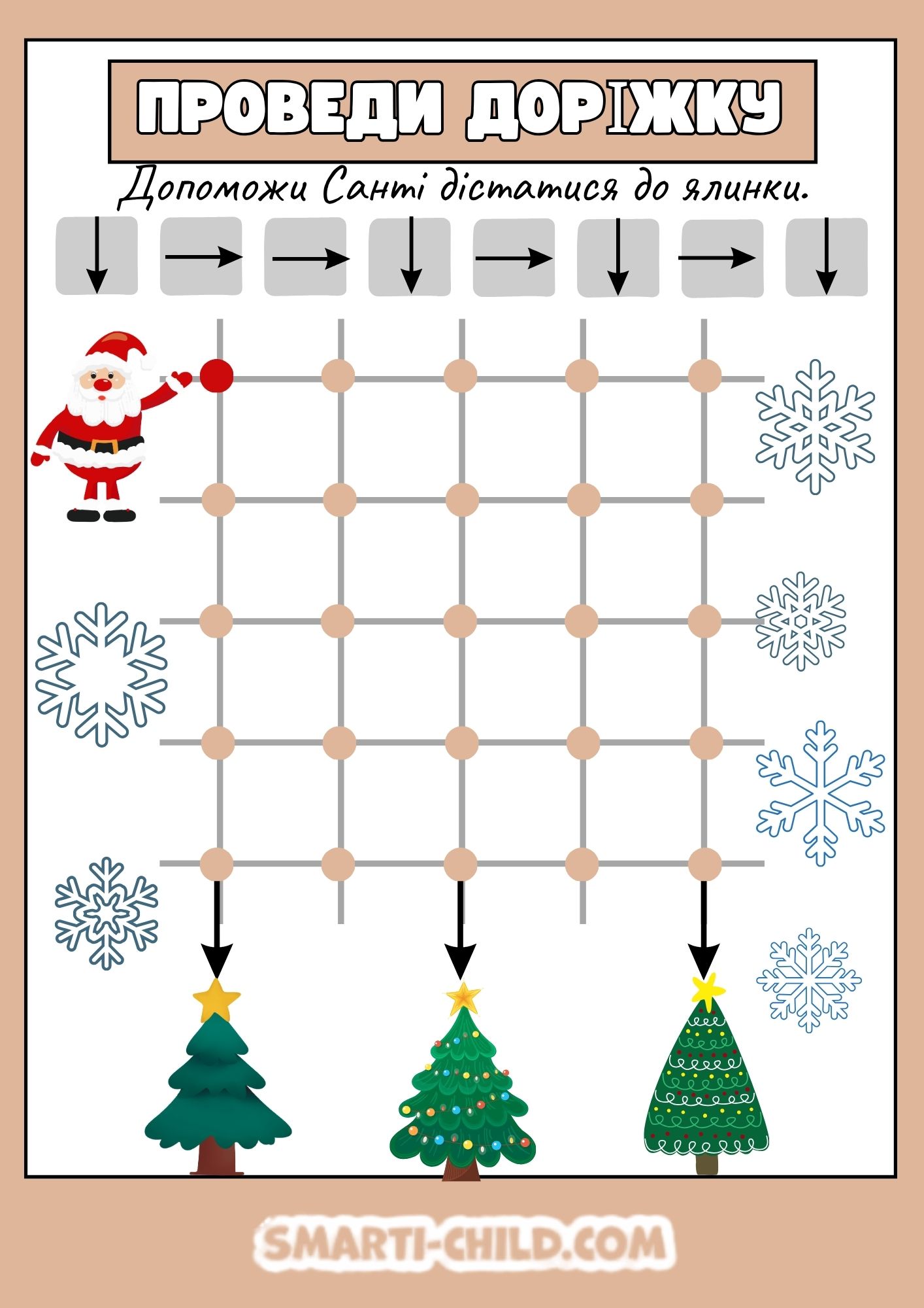 Почни свій шлях від Санти у верхньому лівому куті. Він знаходиться на першій точці сітки.