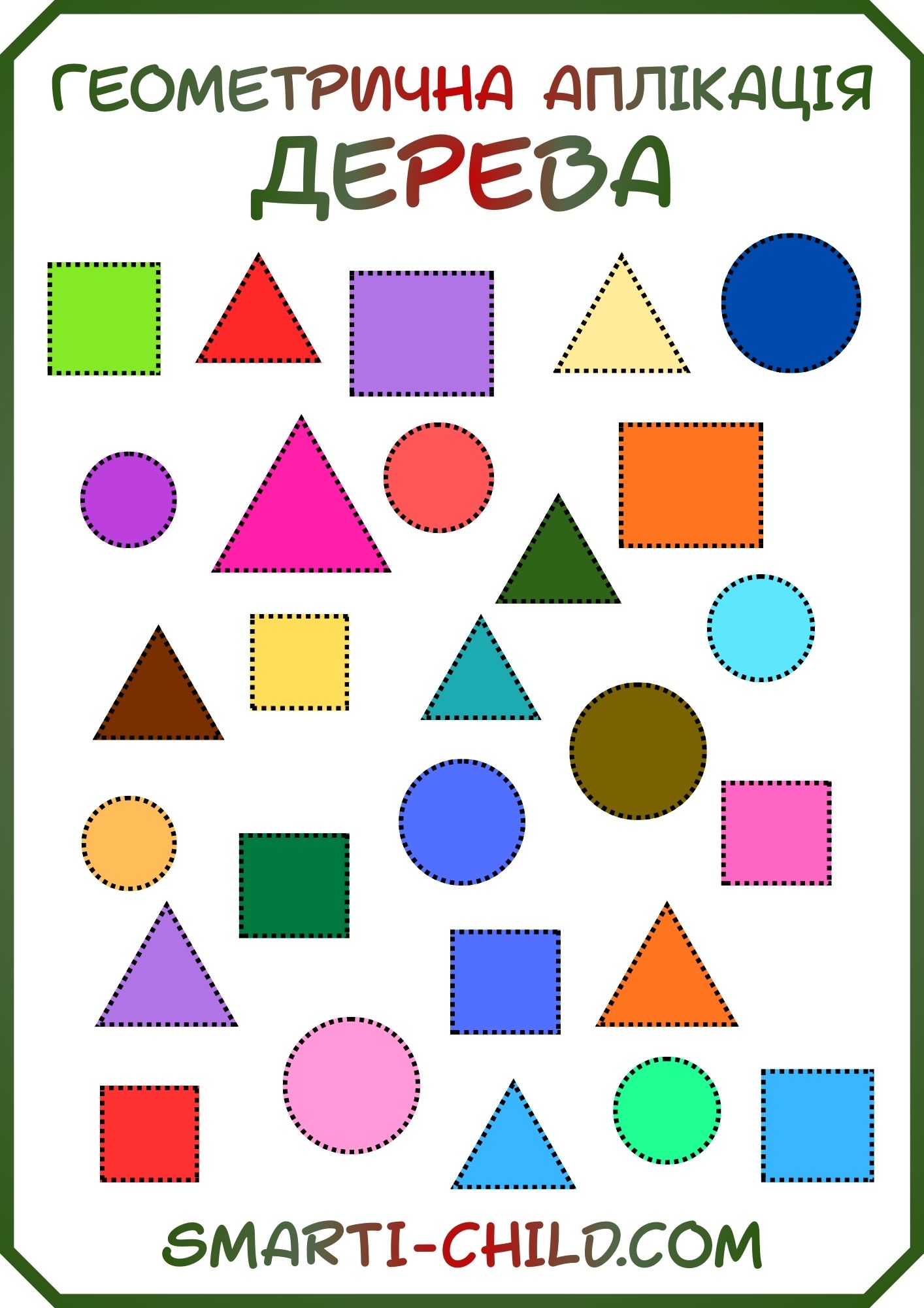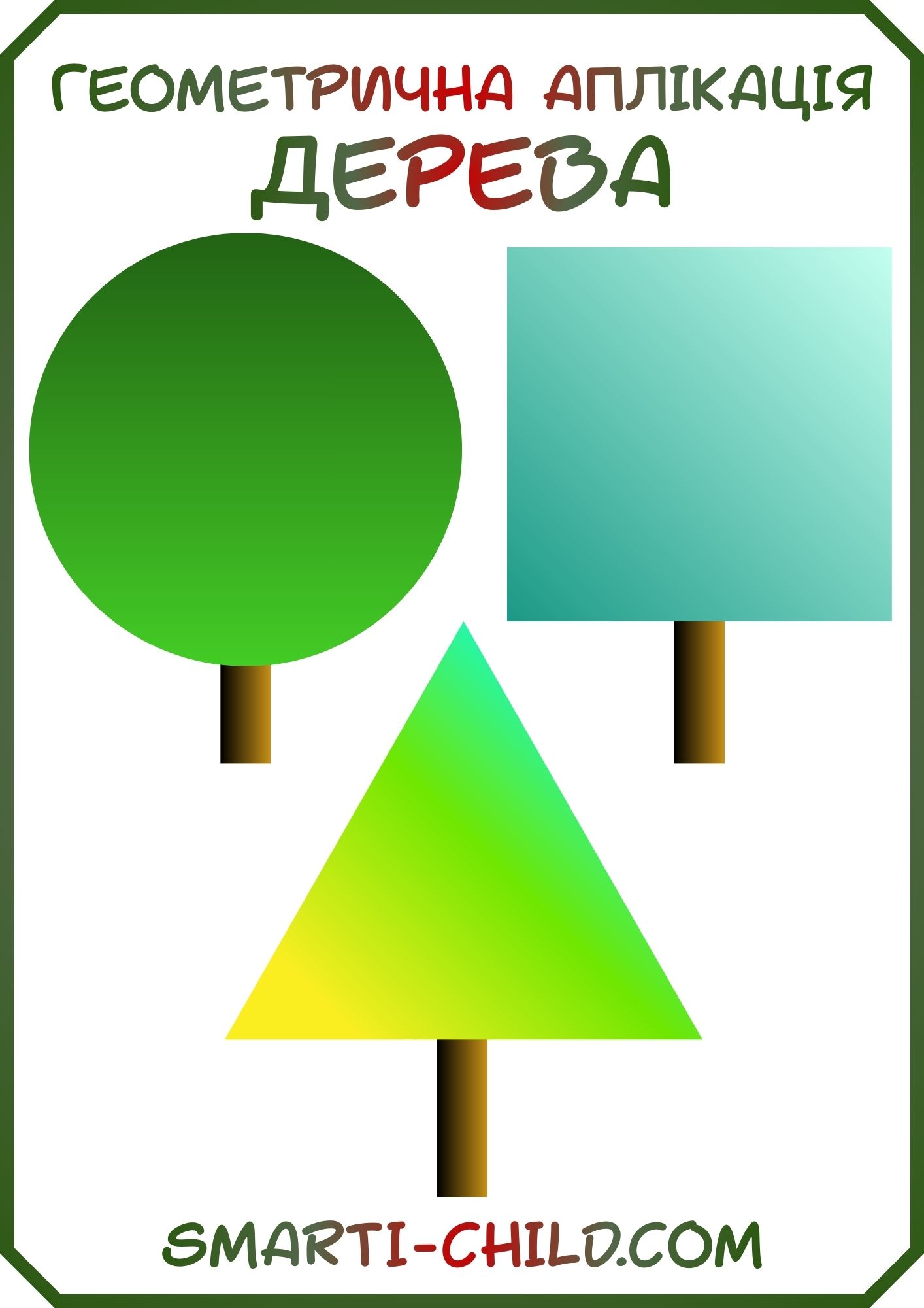 Прикрась дерева відповідними фігурами. Звертай увагу на форму крони.